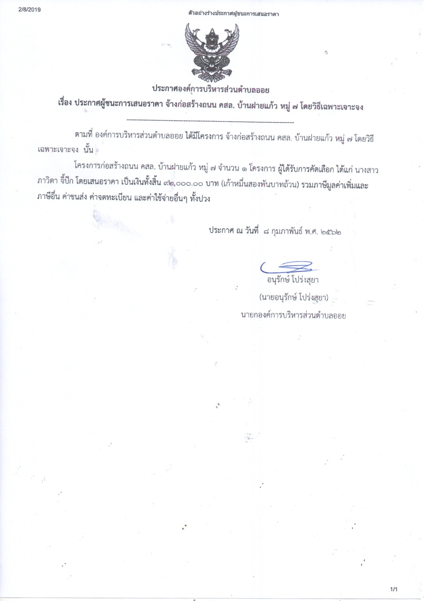 Download this file (จ้างก่อสร้างถนน คสล. บ้านฝายแก้ว หมู่ ๗.jpg)จ้างก่อสร้างถนน คสล. บ้านฝายแก้ว หมู่ ๗.jpg 319 kB