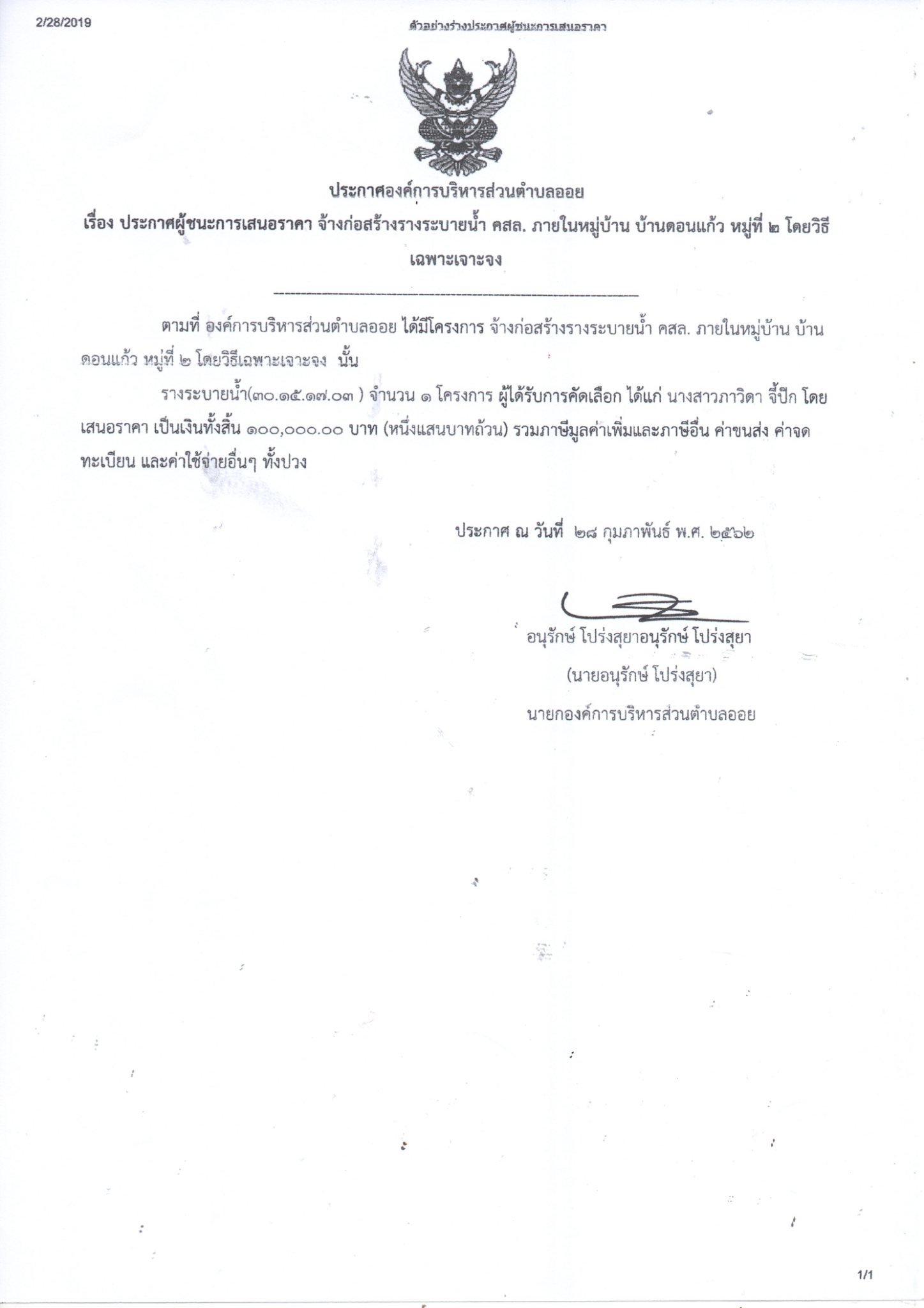 Download this file (จ้างก่อสร้างรางระบายน้ำ คสล. ภายในหมู่บ้าน บ้านดอนแก้ว หมู่ ๒.jpg)จ้างก่อสร้างรางระบายน้ำ คสล. ภายในหมู่บ้าน บ้านดอนแก้ว หมู่ ๒.jpg 317 kB